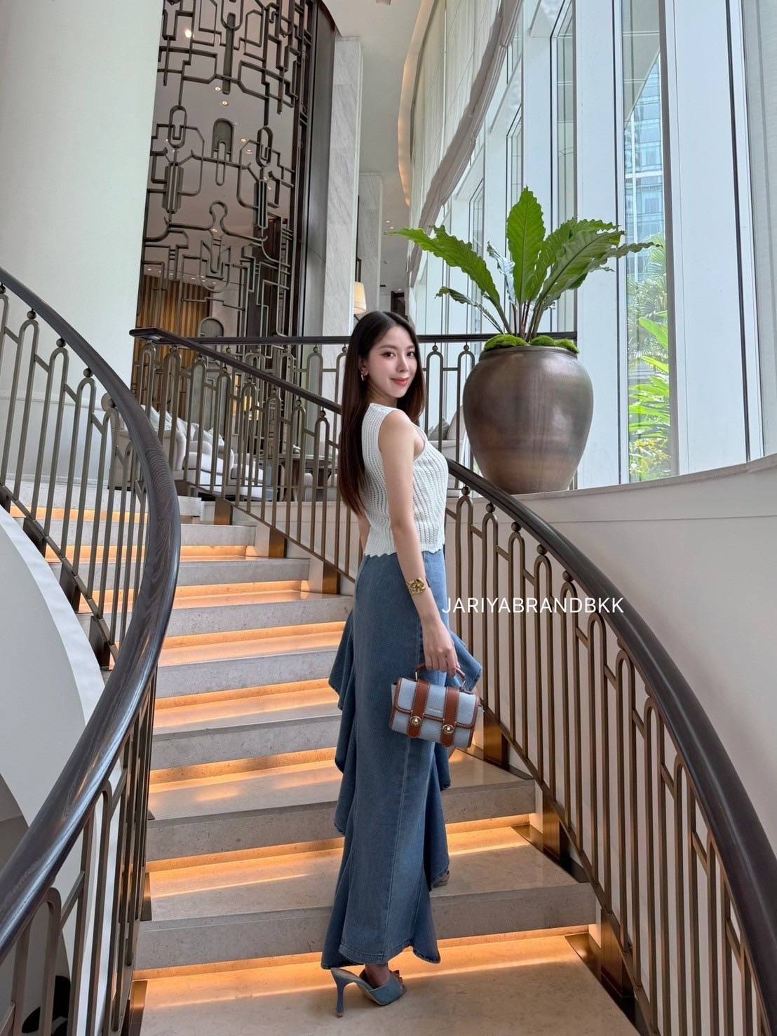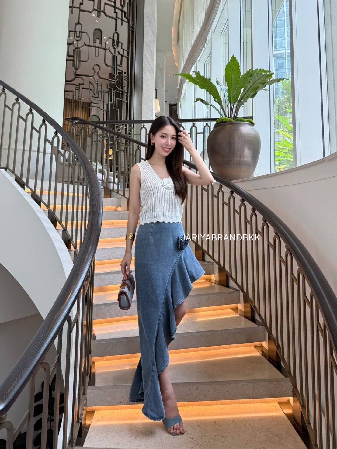 🌹 JARIYABRANDBKK LUXE ROSE TWIST – White & Denim Blue🌹