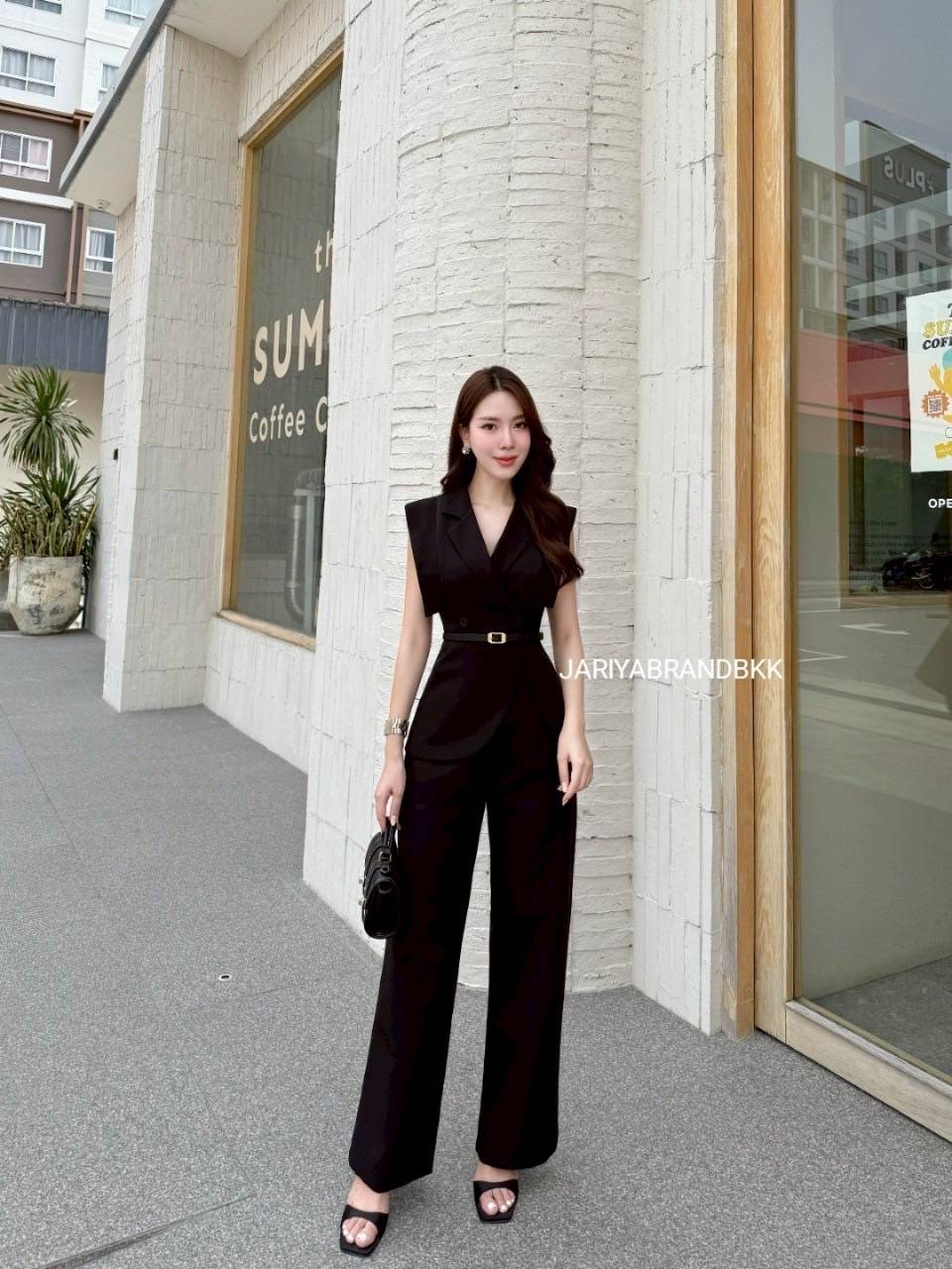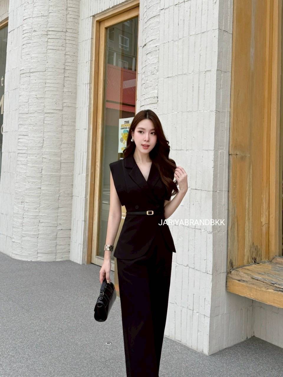 📄ดีไซน์: จัมป์สูทแขนกุด คอปกเท่ ๆ พร้อมเข็มขัดเข้าเอว เพิ่มสัดส่วนให้ดูเพรียว