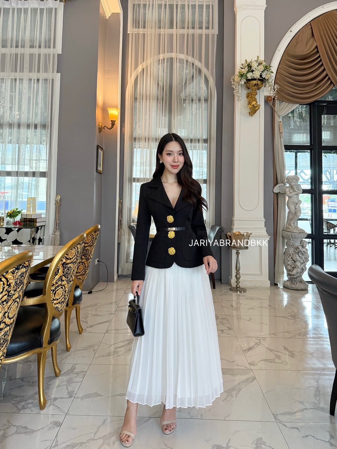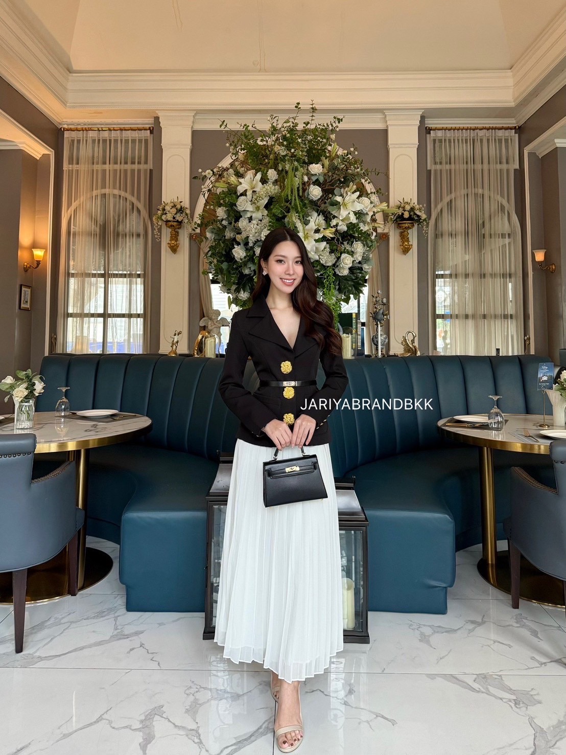 ✨ ตัวเสื้อเบลเซอร์สีดำแต่งกระดุมทองเพิ่มความหรูหรา