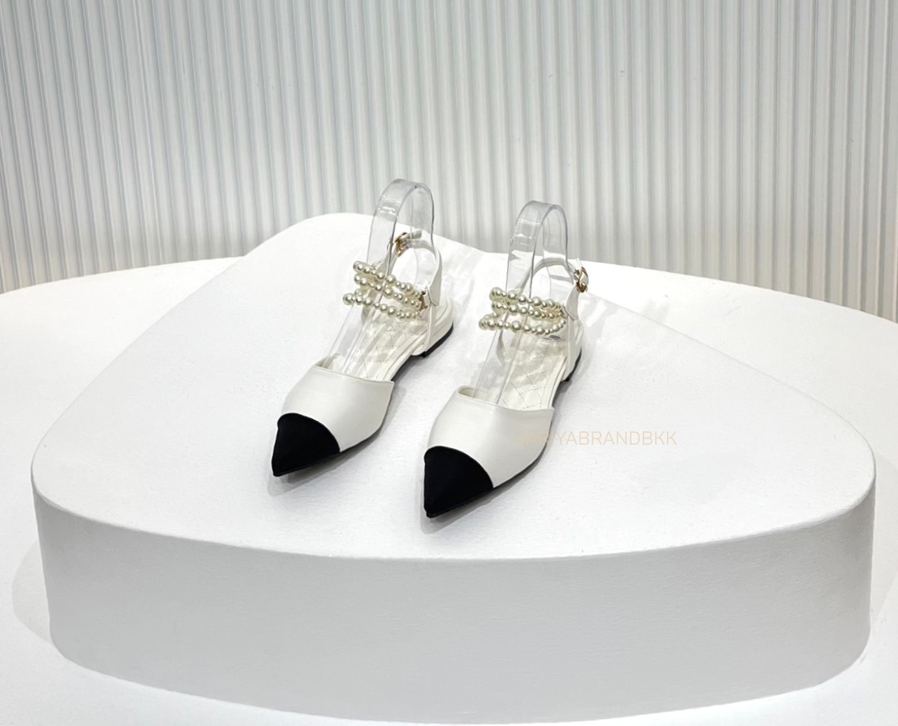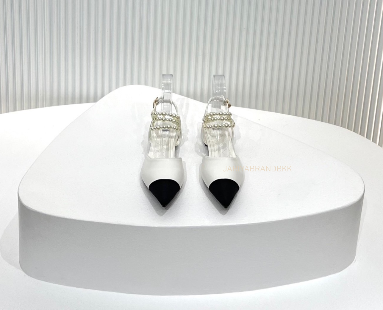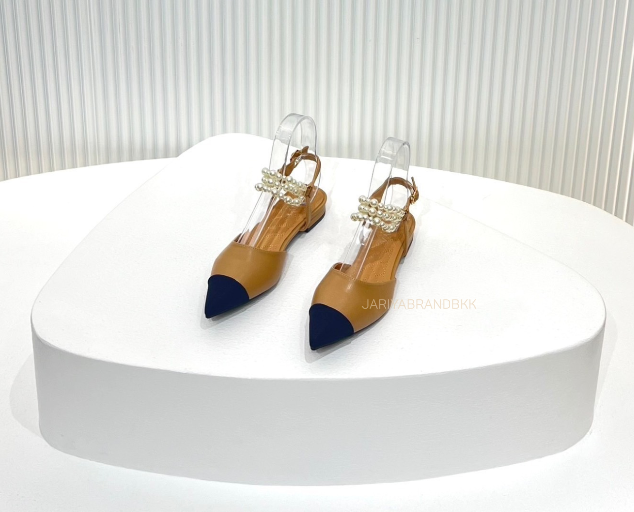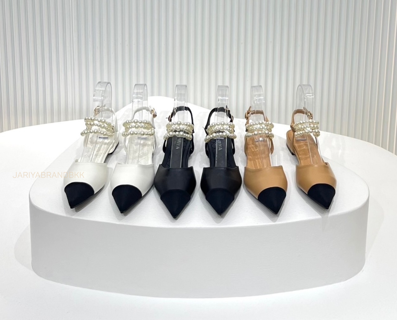 JARIYABRANDBKK SHOES รองเท้าทรูโทนมีส้นหัวแหลมมาพร้อมสายรัดส้นเท้าตกแต่งด้วยสายมุกด้านบน